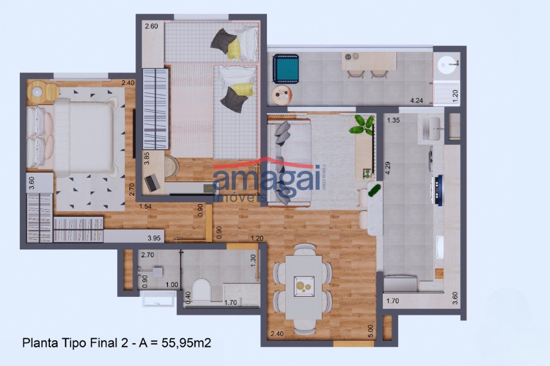 Unidade de 55,95m² - 2 dormitórios com varanda gourmet: Descubra o equilíbrio perfeito entre espaço e funcionalidade! Com 55,95m², esta planta oferece 2 dormitórios e uma varanda gourmet ideal para seus momentos de lazer. Perfeita para... ver mais