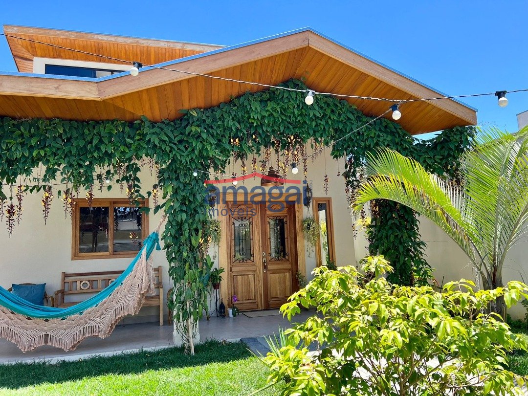 A casa conta ainda com um espaço diferenciado com sala de yoga, recepção e lavabo, perfeita também para quem busca conciliar moradia e bem-estar. Na área externa, destaque para a piscina e o paisagismo encantador, com muitas plantas e flores, criando um verdadeiro refúgio.